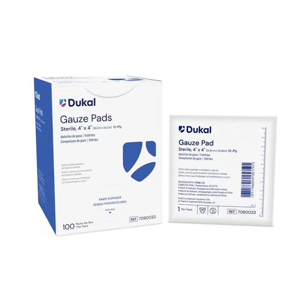 American White Cross (Dukal) Sterile Gauze Pad, 4 x 4, 12-Ply, 100/Box, 12 Box/Case (Pack of 1200)